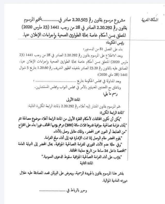 رسميا الحكومة تفرض غرامة 300 درهم على عدم ارتداء الكمامات ومخالفي التباعد الجسدي وثيقة