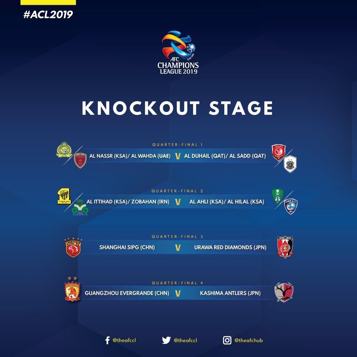 سد د Pa Twitter قرعة دور الثمانية من دوري أبطال آسيا رسميا المتأهل بين الوحدة الاماراتي و النصر السعودي سيلعب مع المتأهل من السد و الدحيل القطريين Https T Co Cms7bawicu