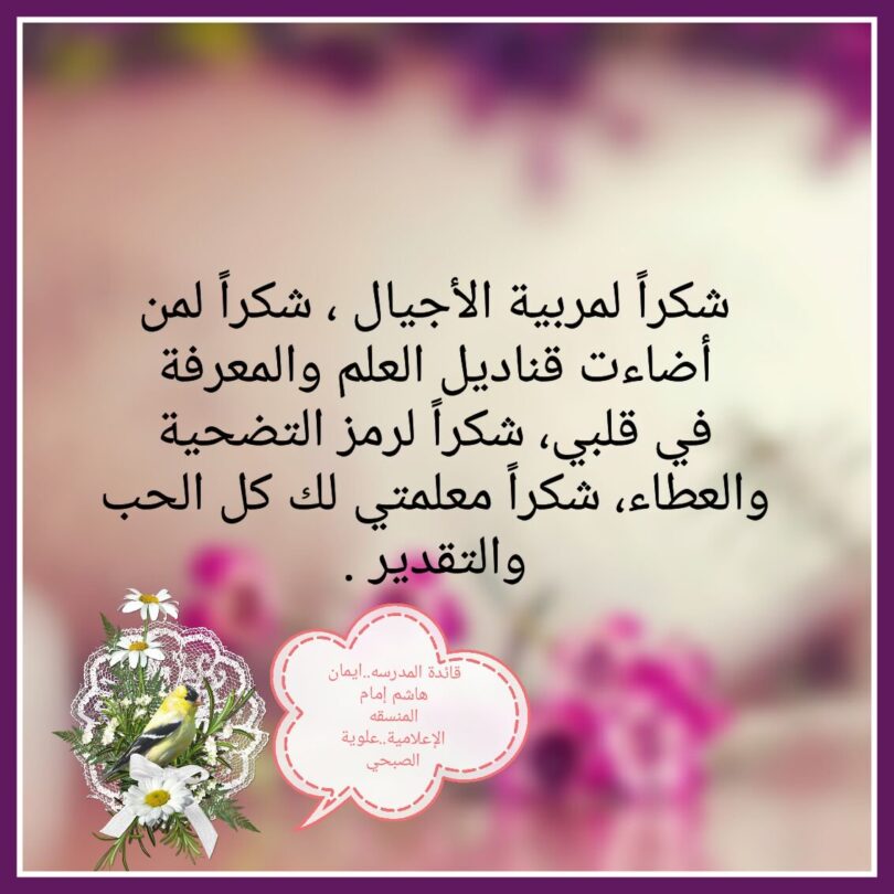 رسالة شكر للمعلم كلمات شكر لمعلمى المنام