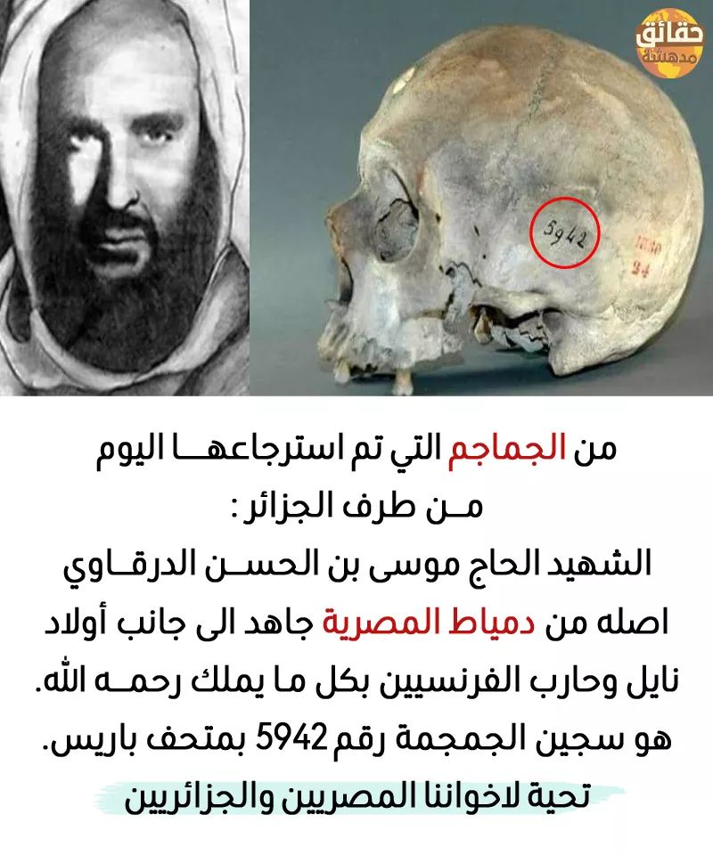 موسى الدرقاوي صاحب الجمجمة 5942 الشهيد المصري بالثورة الجزائرية لمقاومة الاحتلال الفرنسي مصر